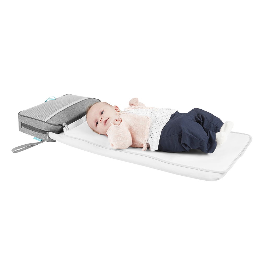 Todos los elementos del cambiador nómada NomadCare son plegables y fácilmente almacenables en el bolso cambiador que se puede llevar a todas partes gracias a su pequeña correa para poner en la muñeca. ¡Un auténtico kit de viaje!