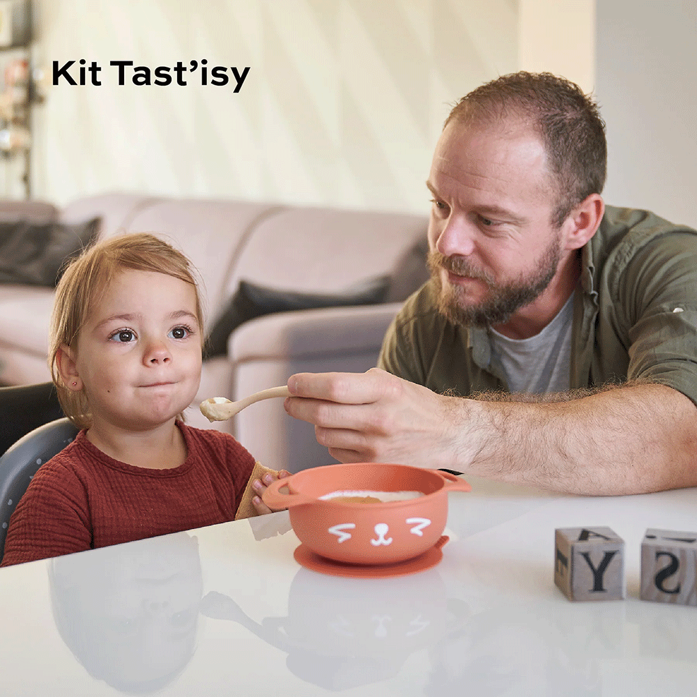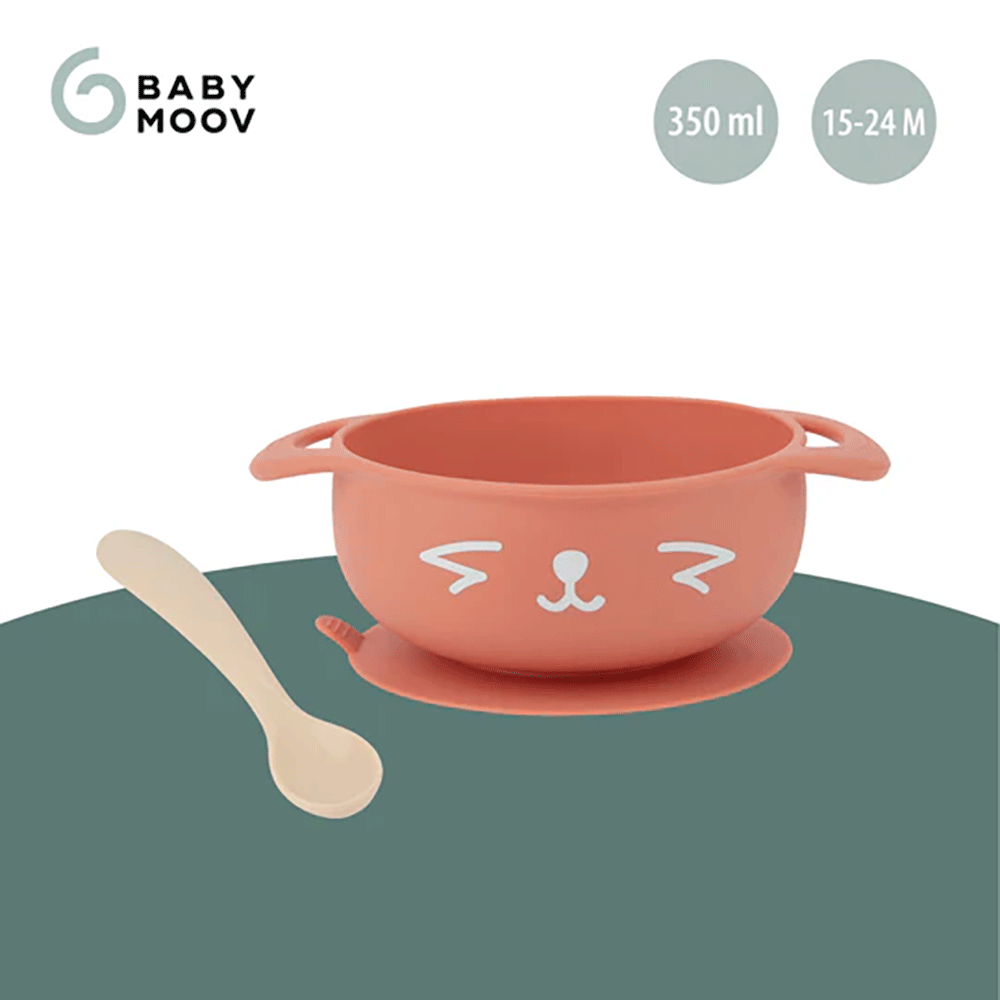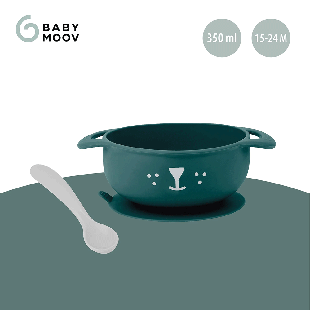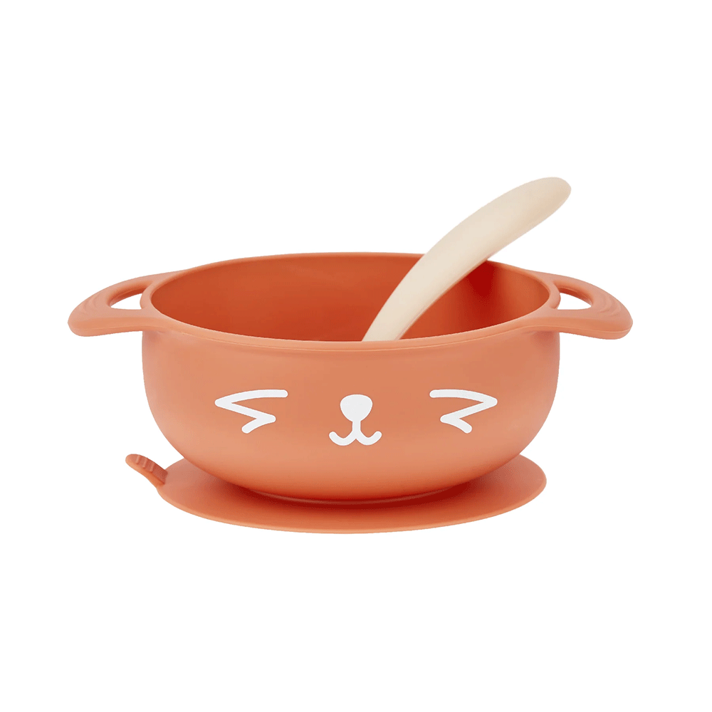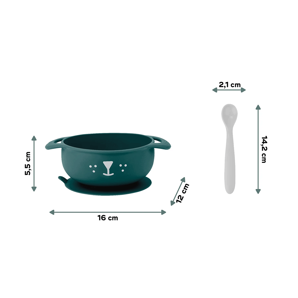 Vajilla compuesta de 1 bol con ventosa y 1 cuchara.